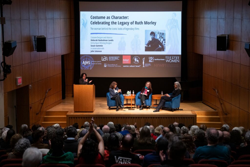AJHS was honored to host “Costume as Character: Celebrating the Legacy of Ruth Morely.” Ruth was behind the iconic looks of several characters now considered legendary in cinema history. We welcomed Ruth’s daughters, Melissa and Emily Hacker, as well as panelists Deborah Nadoolman Landis (Costume Designer and Distinguished Professor at UCLA’s School of Theater, Film and Television), and Susan Gammie (Emmy award-winning costume designer, protege and friend of Ruth Morley), with moderator Julie Salamon (New York Times best-selling author) for a discussion about Ruth Morley’s career and her impact on the field of costume design.