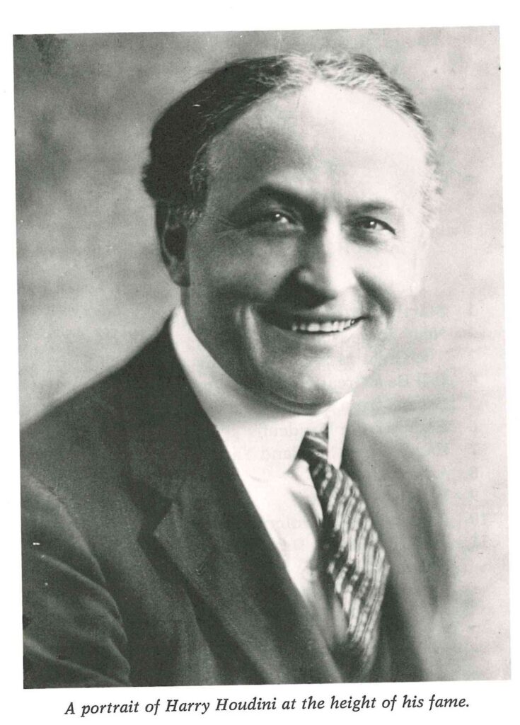 Houdini’s journey to worldwide stardom was fraught with periods of little or no work. We see evidence of Houdini tailoring his illusions for specific audiences, sourcing new tricks from second-hand books and other magicians. His repertoire evolved from simple card and scarf tricks to the mystery box escape (which he renamed the “Metamorphosis” and later the “trunk trick”), to a handcuffs escape, to a strait jacket escape, and finally, to a water escape. As he traveled, he developed a gimmick of escaping from his host town’s local jail. He constantly revised his illusions, determined to innovate and grow to maintain the audience’s suspense. This “escape magic” led to what he called “the challenge,” in which he asked audience members to bring their own handcuffs, from which he would escape.